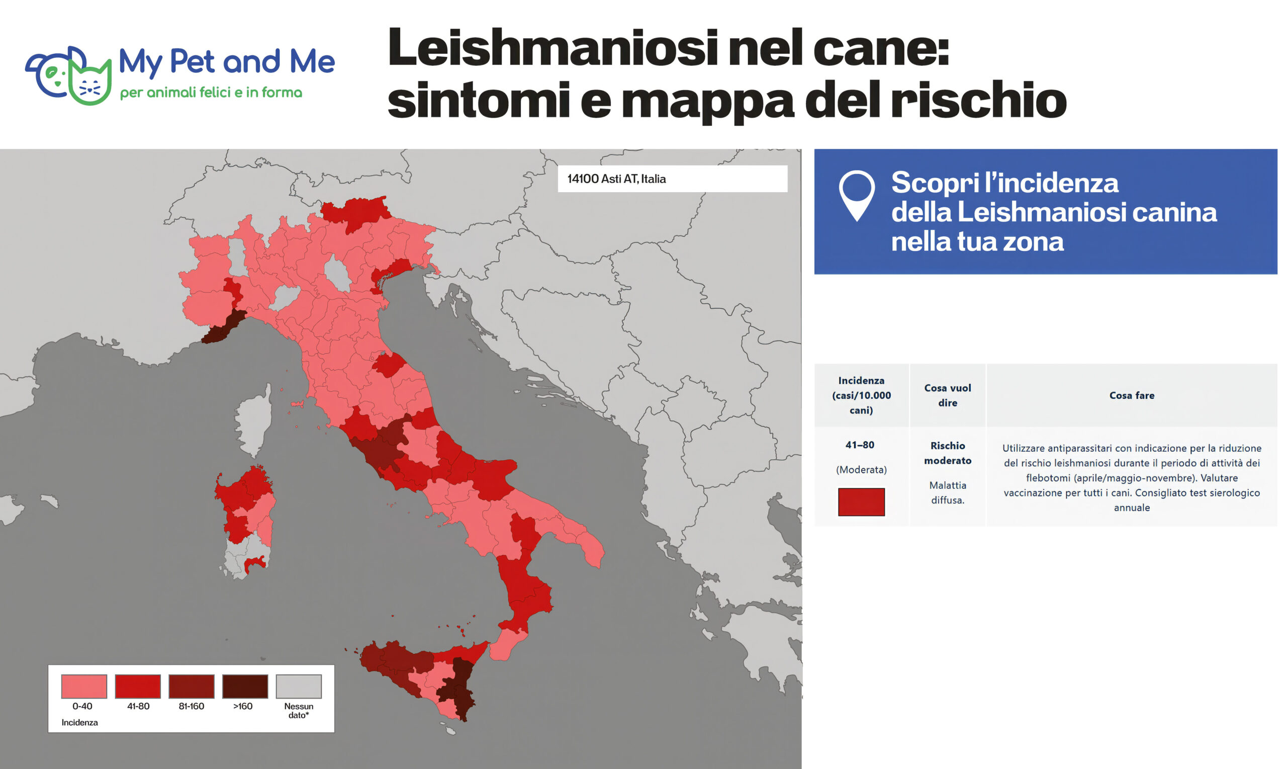La piattaforma, consultabile sul sito My Pet and Me, consente di verificare il livello di incidenza della patologia inserendo il nome di un comune, di una provincia o di una regione. L’obiettivo è fornire un quadro aggiornato della diffusione della malattia a livello locale e favorire una prevenzione più mirata con il supporto del veterinario.