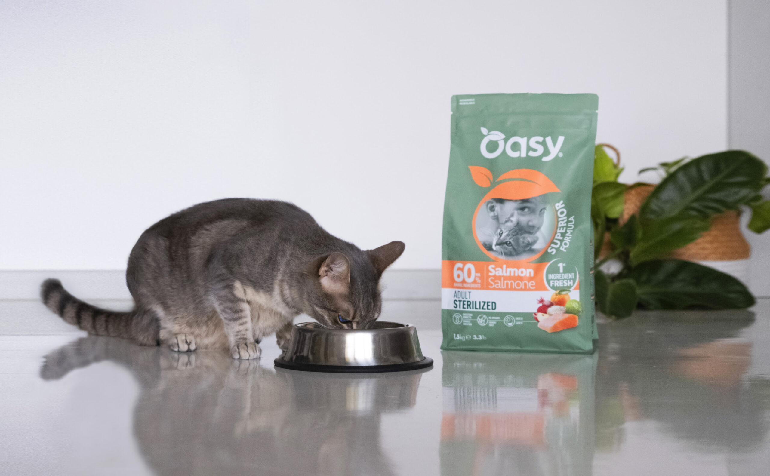 Oasy introduce una gamma di alimenti secchi per gatti pensata per coprire le esigenze nutrizionali in tutte le fasi di vita. La linea Superior Formula comprende 13 ricette formulate con un’alta percentuale di ingredienti di origine animale, con materia prima fresca come primo componente per garantire appetibilità e una digestione più agevole.
