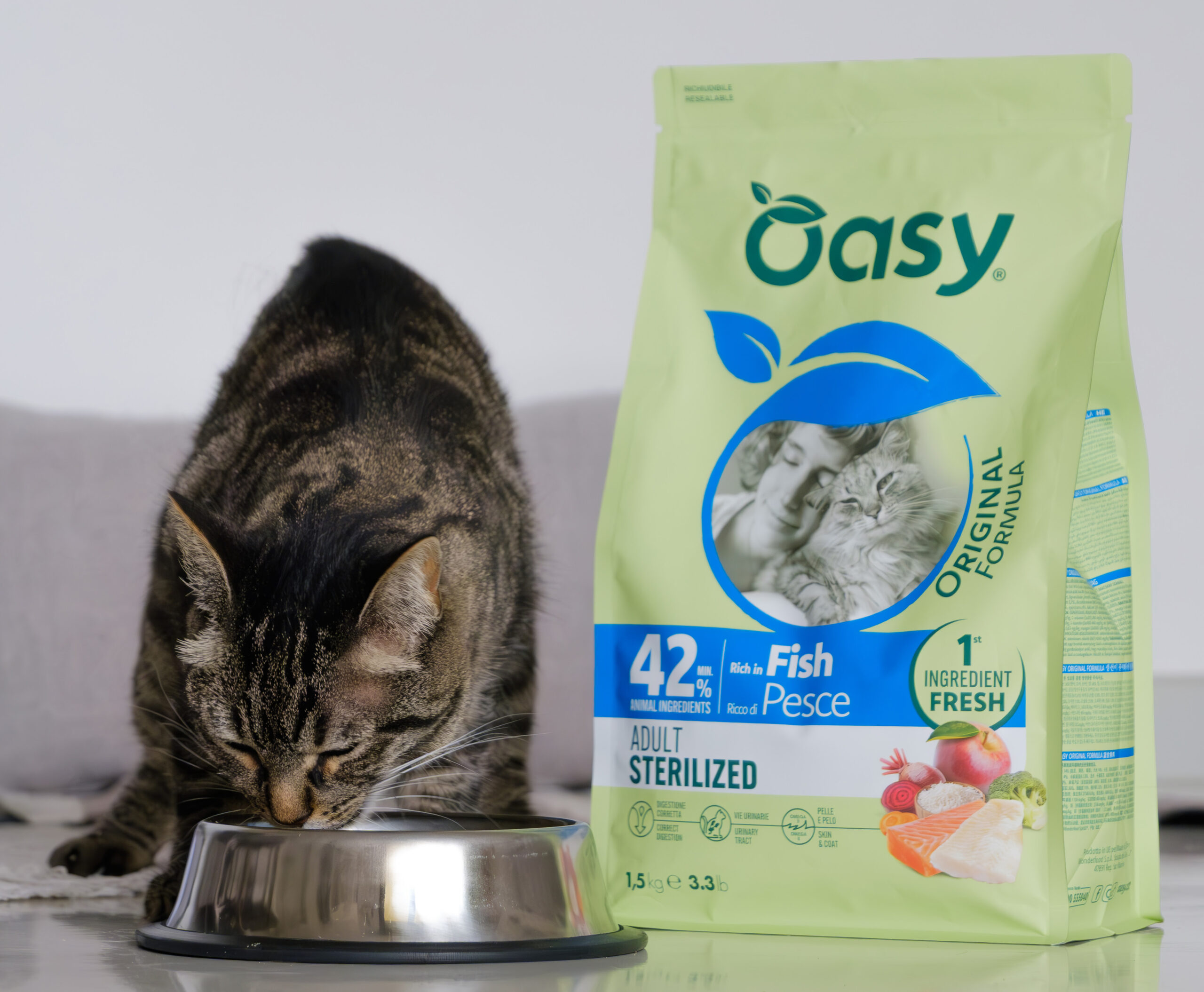 Oasy amplia l’offerta dedicata cat food con una gamma pensata per garantire una dieta equilibrata ai gatti sterilizzati e ai kitten. Le crocchette di Oasy Original Formula sono realizzate con ingredienti selezionati e con una quota di materie prime animali pari ad almeno il 42%, con la carne fresca sempre come primo ingrediente. L’obiettivo è offrire un apporto proteico adeguato e una nutrizione completa per il benessere quotidiano.