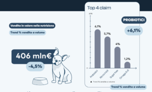 Più stabile il paniere rich-in, che sviluppa oltre 650 milioni di euro con 1.968 prodotti e chiude sostanzialmente invariato rispetto all’anno precedente. Il claim vitamine, primo per peso a scaffale e fatturato, arretra sia a valore sia a volume. In controtendenza i prebiotici, che con 247 referenze raggiungono quasi 117 milioni di euro e crescono del 4,7% a valore e del 6,1% a volume, sostenuti da maggiore offerta e promozionalità. Segnali positivi anche per Omega 3-6, mentre calano in modo marcato le referenze con richiamo a carne o pesce fresco.