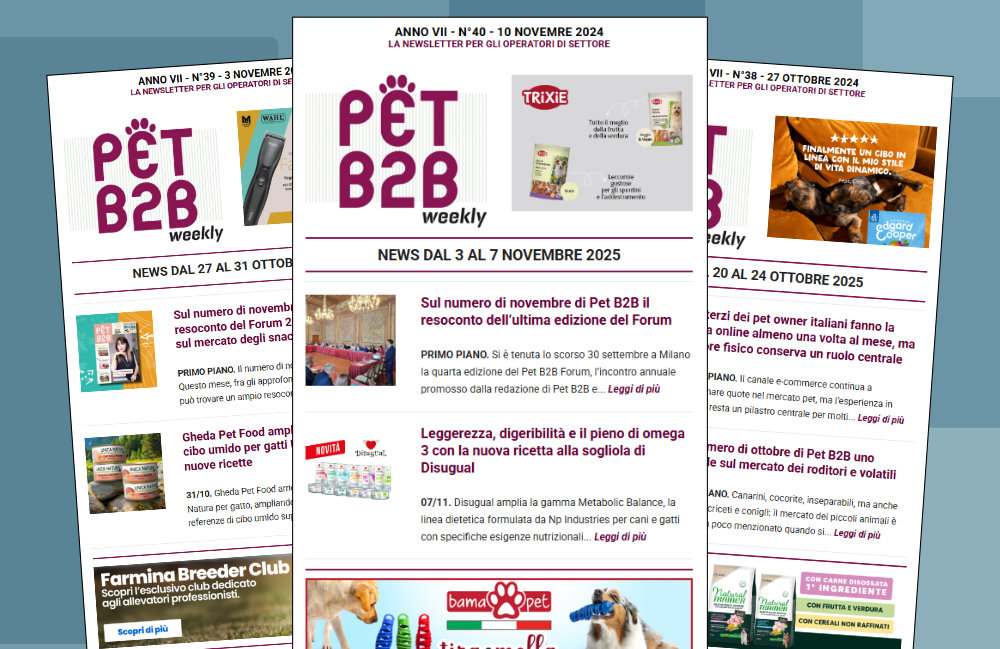 È disponibile il nuovo numero della newsletter Pet B2B Weekly del 10 novembre 2025, con le notizie dal mercato pet degli ultimi giorni.
