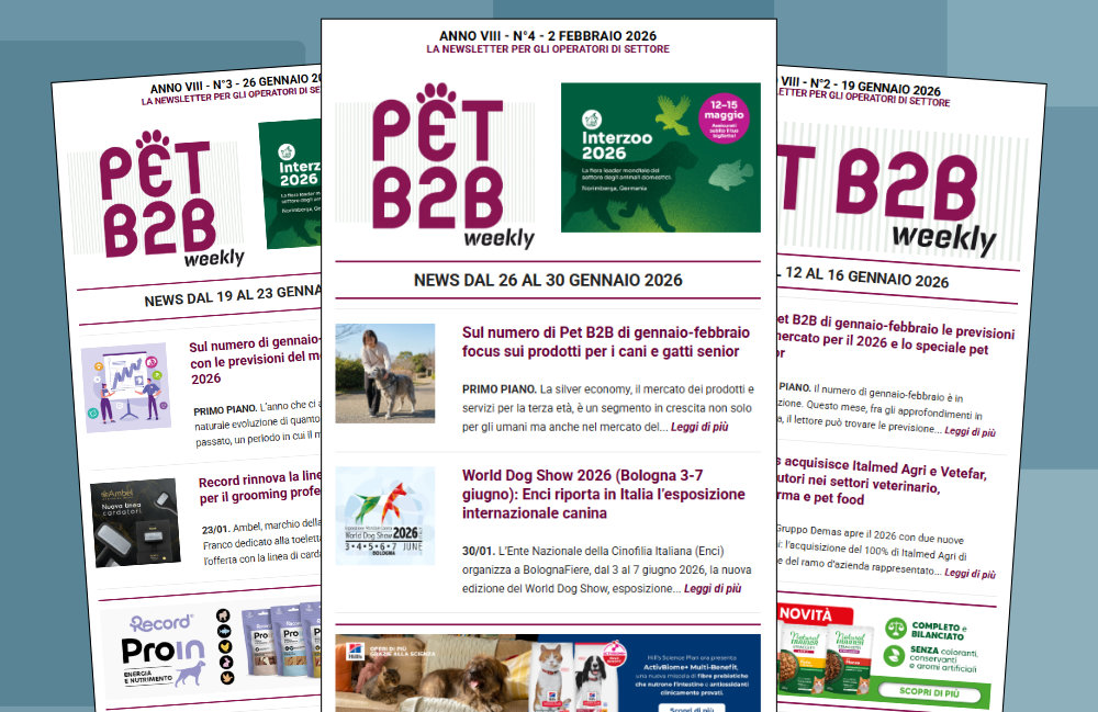 È disponibile il nuovo numero della newsletter Pet B2B Weekly del 2 febbraio, con le notizie dal mercato pet degli ultimi giorni.