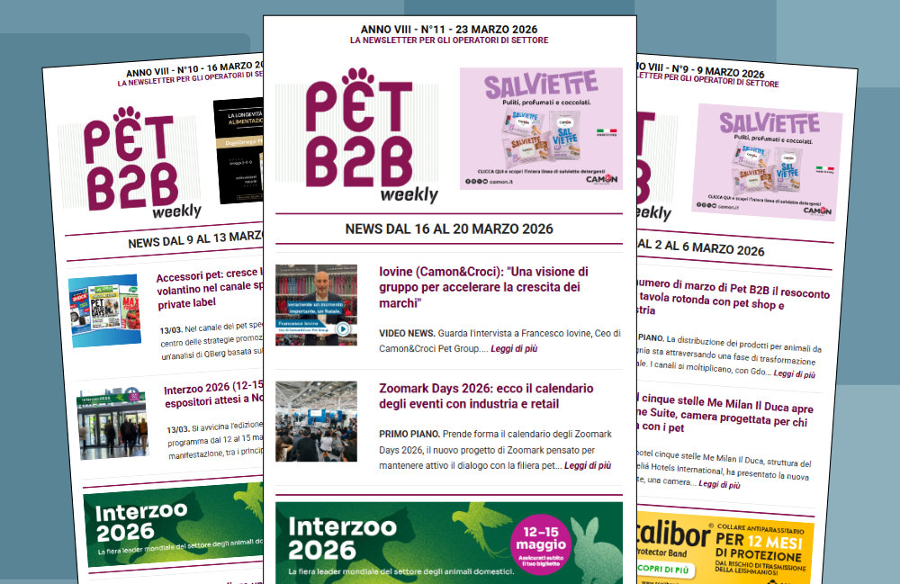 È disponibile il nuovo numero della newsletter Pet B2B Weekly del 23 marzo, con le notizie dal mercato pet degli ultimi giorni.