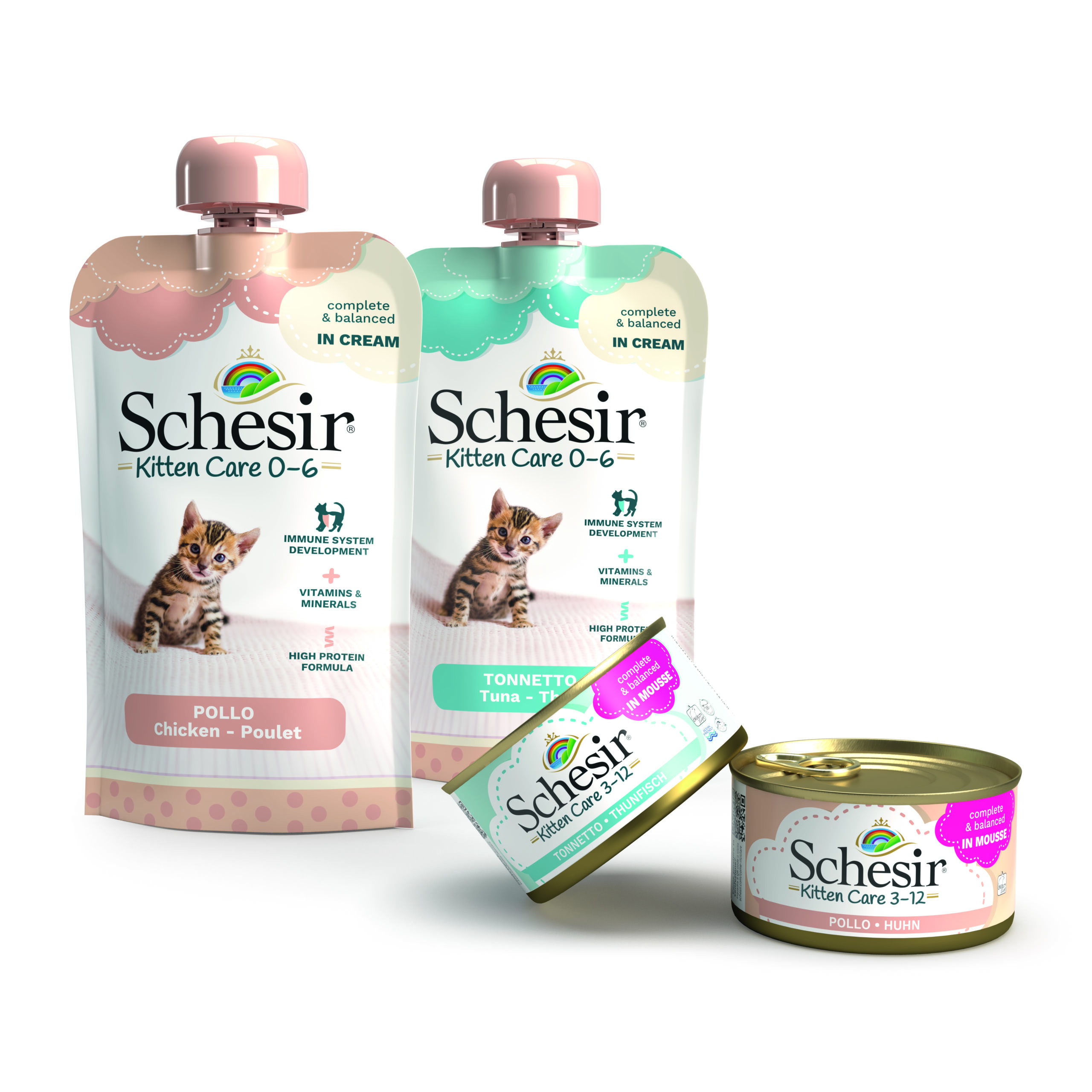 Schesir amplia la linea di alimenti umidi Kitten Care, arricchendo l’offerta in un segmento in forte crescita: arrivano nuove ricette, complete e bilanciate, studiate per supportare lo sviluppo del sistema immunitario e neurologico dei gattini, dalla nascita sino a 12 mesi.