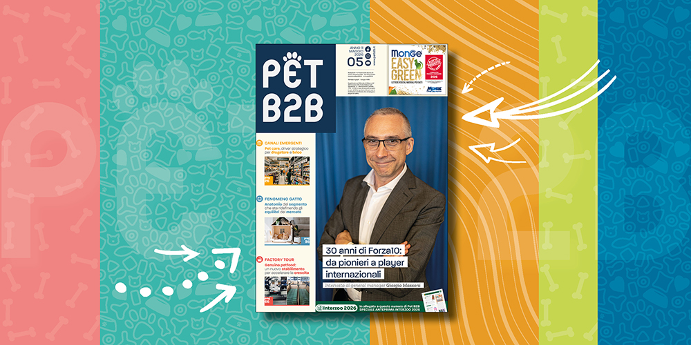 Il numero di maggio è in distribuzione. Questo mese, fra gli approfondimenti in evidenza, il lettore può trovare un approfondimento sui canali emergenti nel pet care, come drugstore e brico, un’analisi del fenomeno gatto e il factory tour di Genuina Pet Food. La cover story è dedicata a Forza10 con un’intervista al general manager Giorgio Massoni.