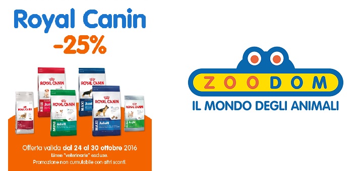Zoodom: dal 24 al 30 ottobre, 25% di sconto sui prodotti Royal Canin